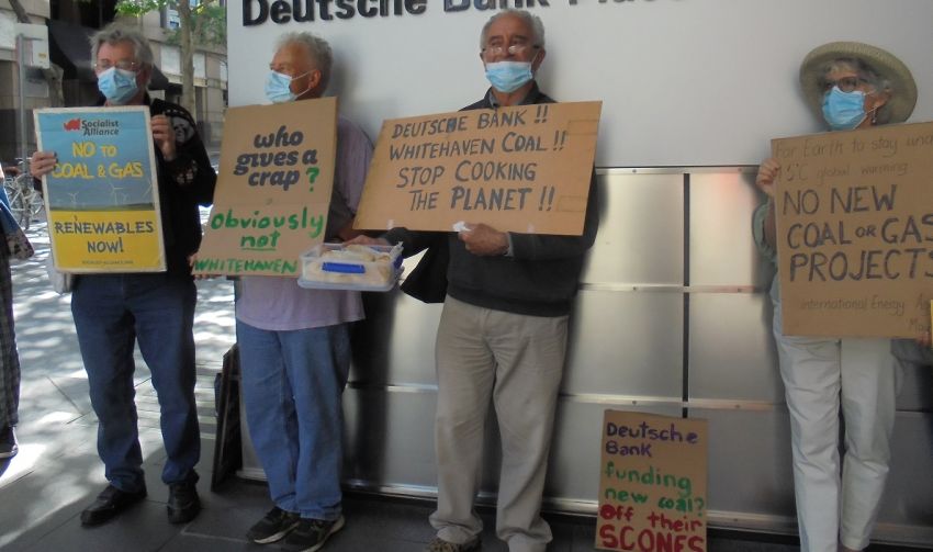 Climate activists called on Deutsche Bank on October 27 not to loan Whitehaven Coal more than $2 billion to expand its operations in northern New South Wales. A protest was also held outside Whitehaven Coal's office in Gunnedah.