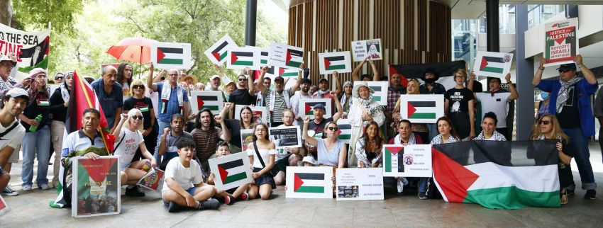 Chanting "Free, free Palestine" and "From the River to the Sea, Palestine will be free", 70 protesters gathered in the Murray St Mall to protest the January 26 slaughter of Palestinian refugees by the Israeli state.