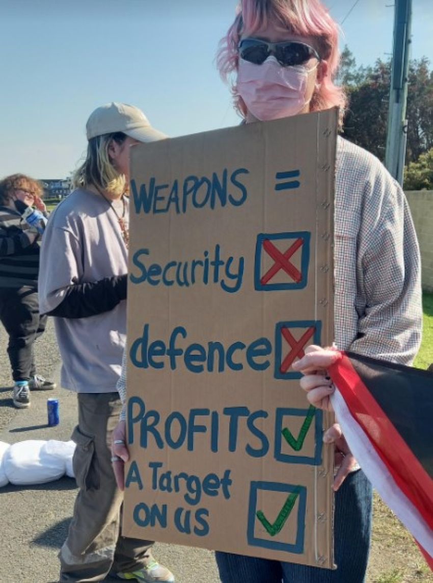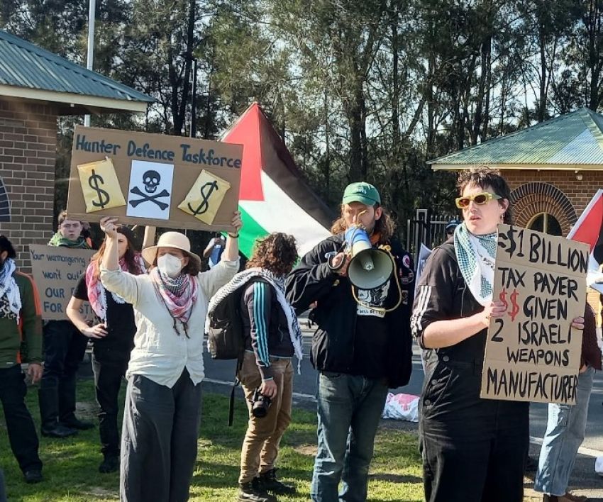 No Weapons for Genocide, Food not Bombs and University of Newcastle Students for Palestine protested outside the annual Hunter Defence Conference in Cessnock on August 21.