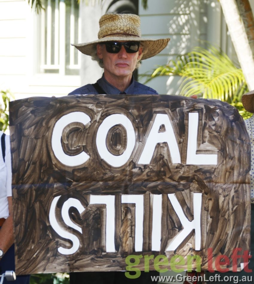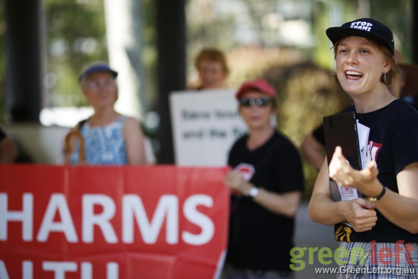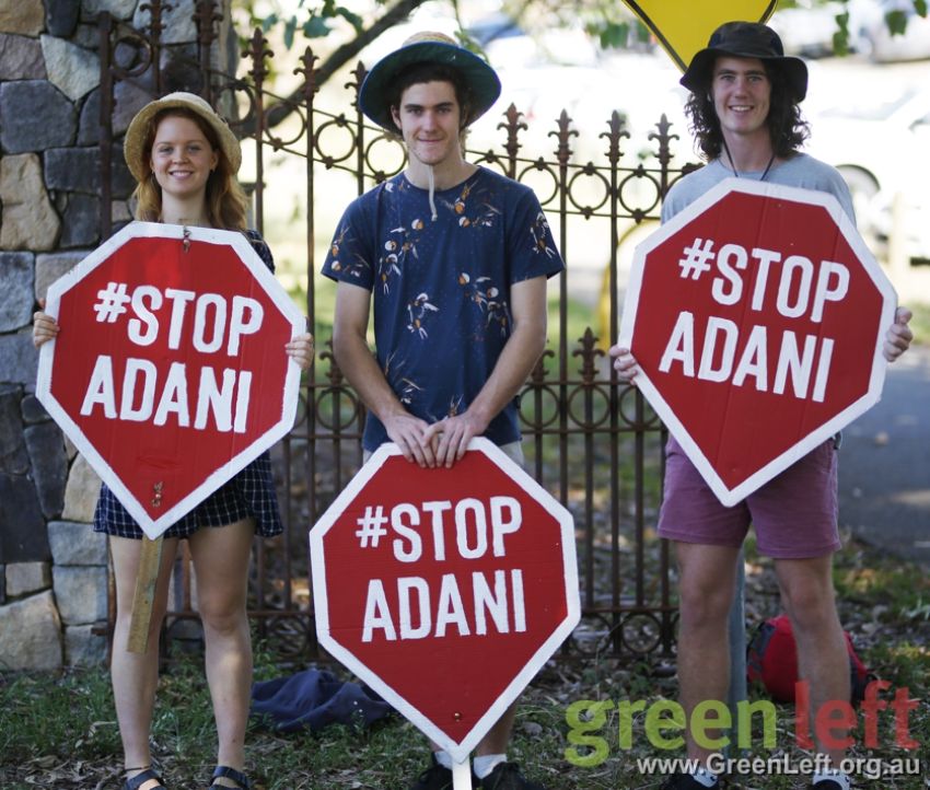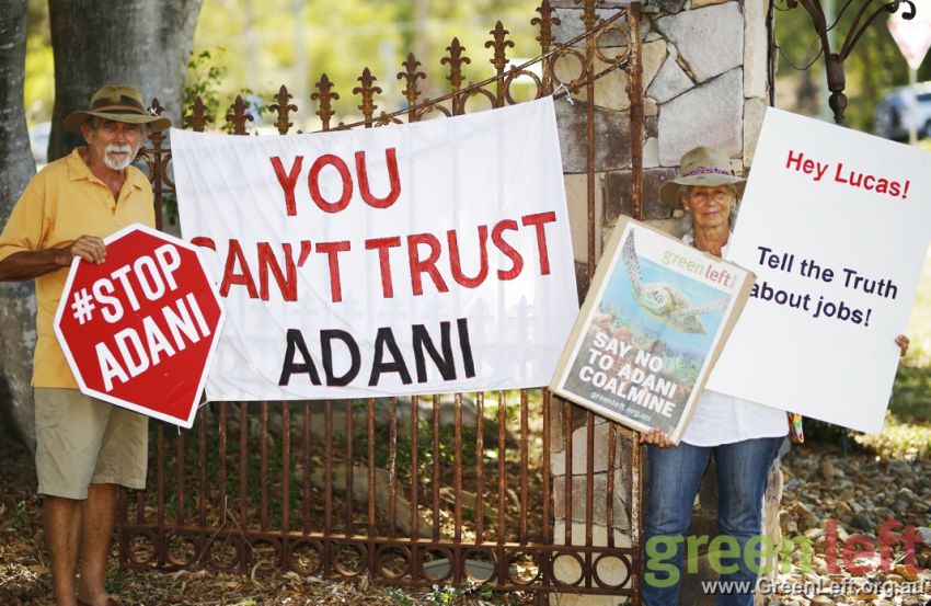 Around 50 protesters gathered at short notice outside a forum addressed by Adani’s Australian CEO Lucas Dow on February 19.