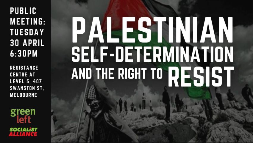 Discussion hosted by Green Left & Socialist Alliance with long-time Palestinian activists about Palestinian self-determination and why Palestinians have the right to resist their unjust occupation.