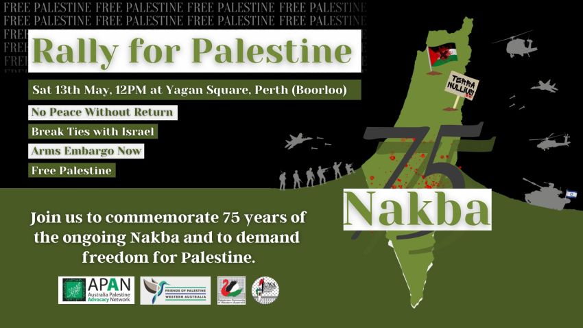 The 15th May 1948 marks the beginning of the Palestinian Nakba (Catastrophe), when over 750,000 Palestinians were expelled from their homes to make way for the State of Israel. Today, the Israeli occupation continues. Join with us to commemorate 75 years of the ongoing Nakba and to demand: