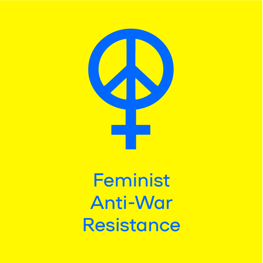 - Join peaceful demonstrations and launch offline and online campaigns against the war in Ukraine and Putin’s dictatorship, organising your own actions. Feel free to use the symbol of the Feminist Anti-War Resistance movement in your materials and publications, as well as hashtags #FeministAntiWarResistance and #FeministsAgainstWar.