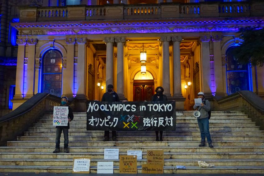 NOlympics Action Sydney gathered outside Sydney Town Hall on June 23, as part of a global day of action calling on the Japanese government not to proceed with the Tokyo Olympics.