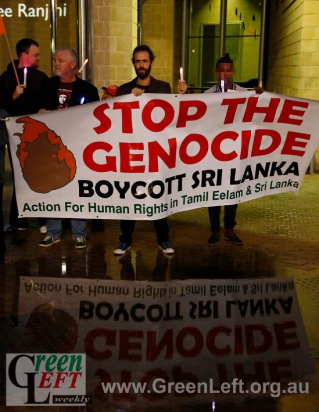 "These war crimes are still taking place," she said. "This has forced thousands of Tamils to flee to Europe, Canada and Australia seeking asylum.