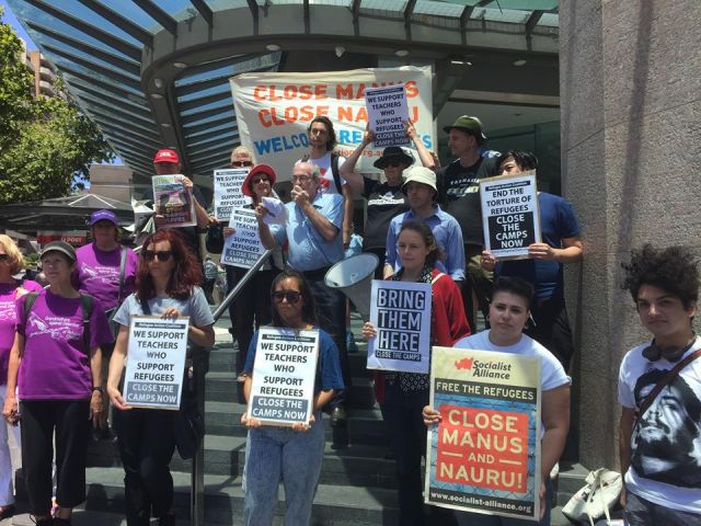 The teachers for refugees groups called a solidarity rally in Melbourne and in Sydney for December 12 and on December 13 they are targetting Malcolm Turnbull's office in Edgecliff. They are demanding that the offshore camps be closed and the refugees be bought to Australia. They also want the billions wasted on offshore camps to instead be spent on education for refugees and for an end to the Border Force Act.