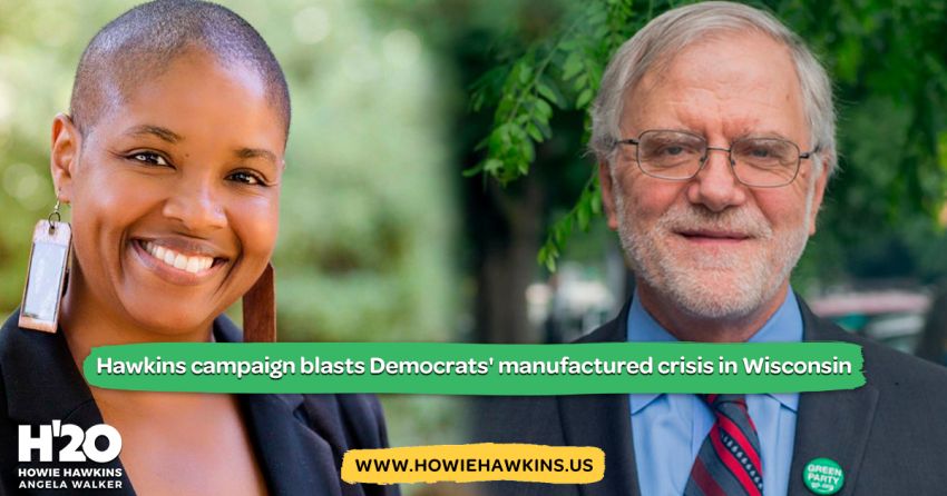 The national Green Party issued a statement: “By kicking Howie and Angela off the ballot in Wisconsin and then celebrating this naked act of self-serving disenfranchisement, the Democrats have made plain their intention to ‘save Democracy from Trump’ by killing it themselves first and then dancing on the grave.”