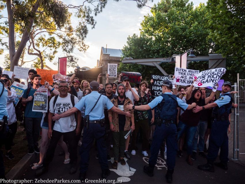 When several hundred refugee activists rallied outside Tony Abbott’s “Warringah Dinner” election fundraiser in Redfern on November 10, the atmosphere was electric. Those of us outside were angry that just a few hundred metres away, well-heeled Liberal Party supporters were wining and dining and listening to guest of honour Minister for Immigration and Border Protection Peter Dutton, while an insane act of cruelty was being carried out by his own department on 600 men imprisoned on Manus Island.