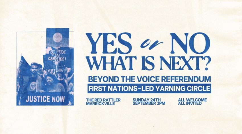 So, bring a mate, bring your partner, bring yourself, to enter this yarning circle and discuss the Voice to Parliament, beyond the referendum and build the Blak Caucus.