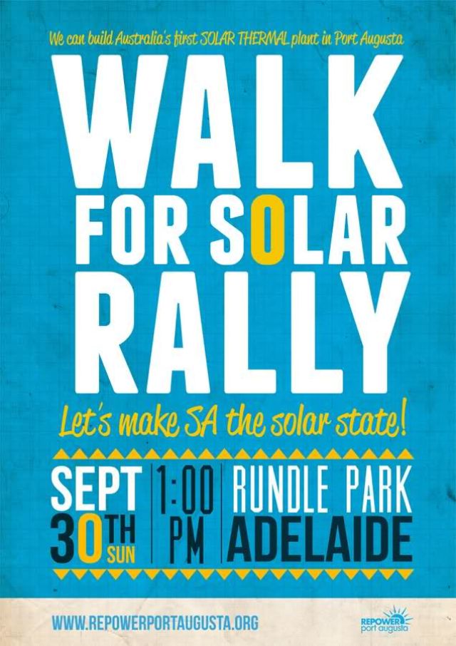 MH: I really don't know, but it will certainly help if thousands of people turn out to the Walk for Solar Adelaide rally to join forces with us at the end of our long walk! That's Sunday September 30, 1.00pm, meeting at Rundle Park.