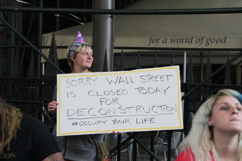 Inthesetimes.com said about 1000 people marched in New York's financial district that day. The protest was organised into several different smaller mobilisations to hamper any attempt by police to shut it down.