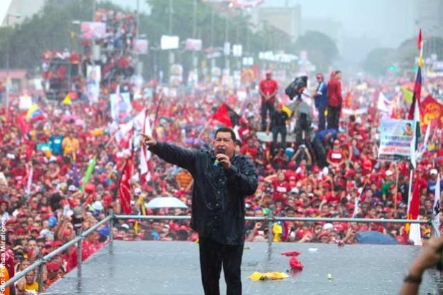 Despite the heavy rain which flooded Caracas’ streets, the Venezuelan president managed to make his way through the crowds by 2pm, when he then addressed what has come to be known as the Chavista “sea of red.” He promised the crowd that he would be a “better president” and a “better companion” to the people during his next term.