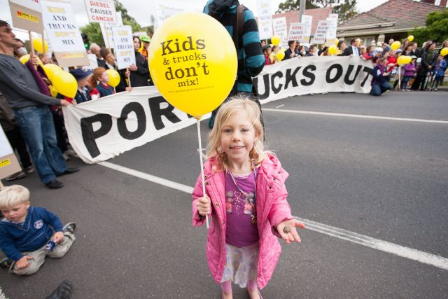 The protest called for a ban on trucks along the street during school crossing times. A petition by MTAG, on the Change.org website, explains that “school crossing time is the most congested and slow moving time for traffic ... trucks are operating at their least efficient and most polluting level, especially under heavy load as they take off from the crossings.”