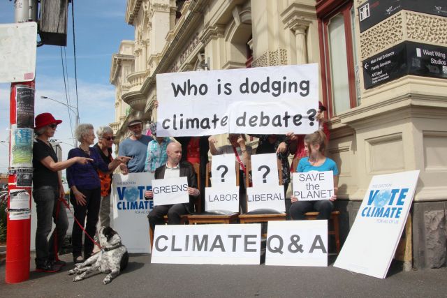 Last week local climate group, Darebin Climate Action Now (DCAN) held a mock climate forum outside Northcote Town Hall, with empty chairs for Labor and Liberal candidates. DCAN members held a banner: “Who is dodging climate debate?”