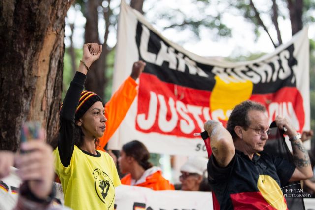 I stand here today as a woman of the resistance. I grew up in Mount Druitt and Redfern. My fire was lit as a young girl by my parents who raised me and my brothers and sisters in the struggles of the 1970s and 1980s.