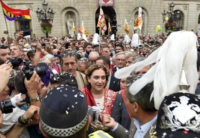 When the city’s newly elected councillors left the town hall to make the traditional visit to the premier of Catalonia (CiU's Artur Mas), they found it almost impossible to push through a crowd set on greeting Colau and the rest of the Barcelona Together team.
