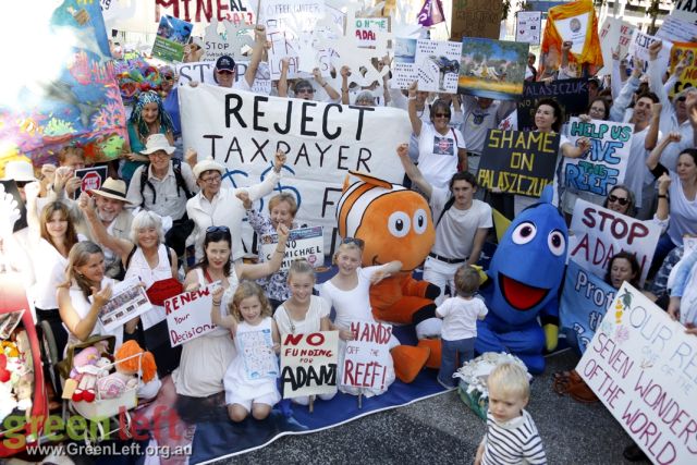 The rally was organised by the Australian Marine Conservation Society and supported by 350 Brisbane, GetUp, the Australian Youth Climate Coalition among others.