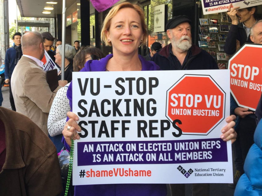 Greens Senator Janet Rice told protesters: “VU council could have stood up with the staff, students and NTEU and told the federal government ‘enough with the cuts’. Instead, it has chosen to sack workers”.