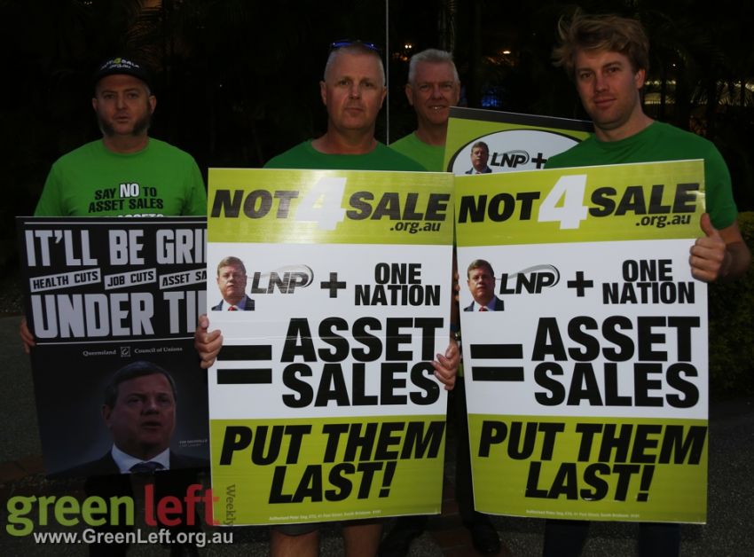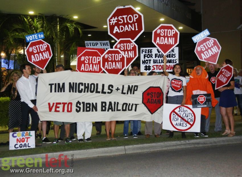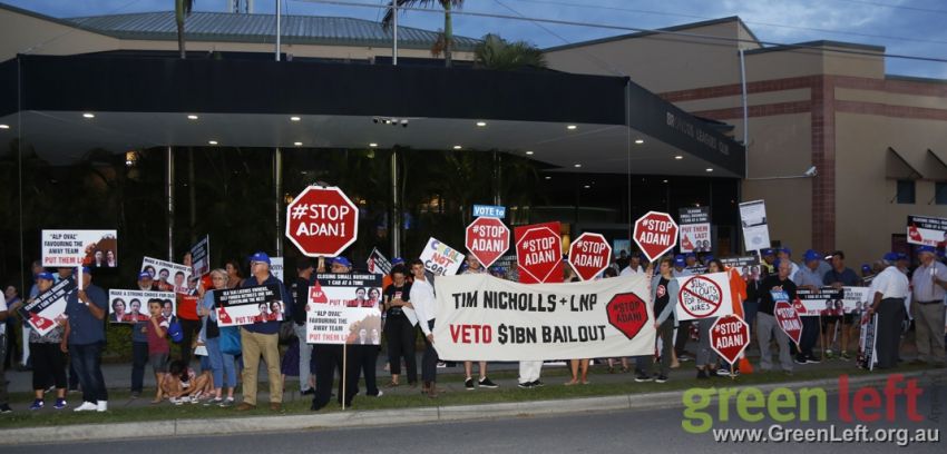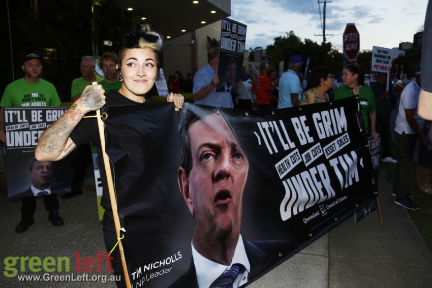 It was an all-in protest outside the leaders debate in the Queensland elections on November 16. Stop Adani protesters calling for Tim Nichols to veto the $1 billion NAIF loan alongside Taxi drivers wanting to put Labor last. Unionists against asset sales alongside One Nation members.