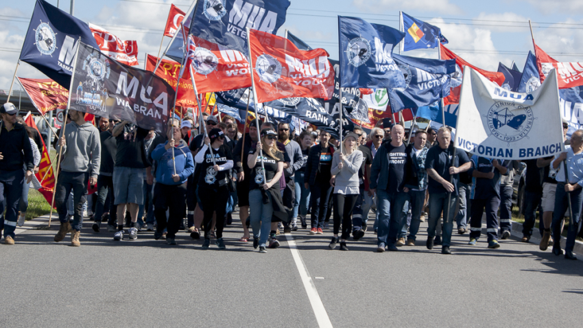 On that day, some 3000 trade unionists attended a rally at Webb Dock in Port Melbourne called by Victorian Trades Hall Council (VTHC) in support of MUA members protesting the bullying, harassment and sacking of their members.