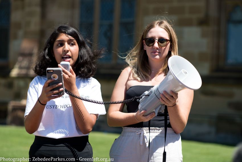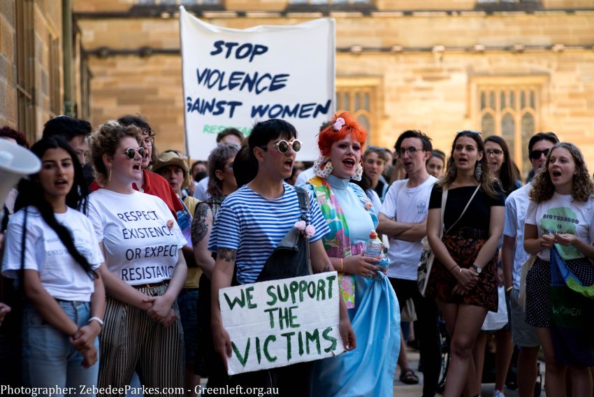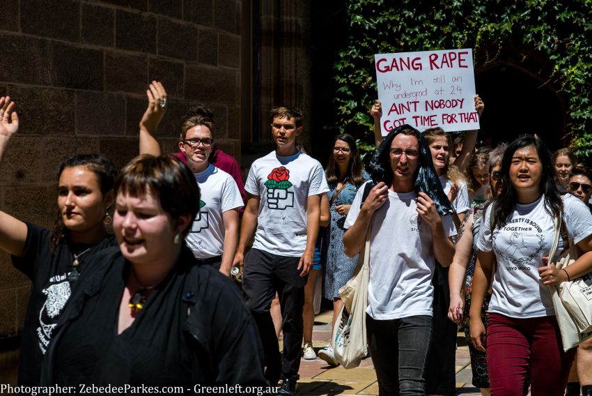 Students at the University of Sydney held a protest during the first day of Oweek to protest sexual assault and harassment on campus.
