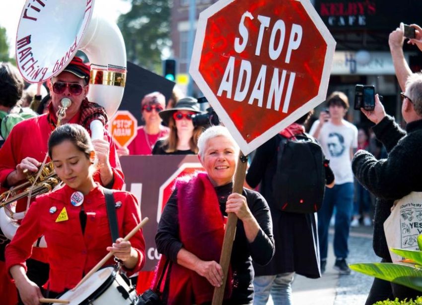 In the Sydney rally, about 400 people rallied at Marrickville Town Hall on May 19, before marching along the main street past Labor’s infrastructure spokesperson Anthony Albanese’s office. The rally was addressed by Stop Adani Sydney members Gillian Reffell and Isaac Astill and featured a brass band and a life-size cardboard cut-out of Albanese.