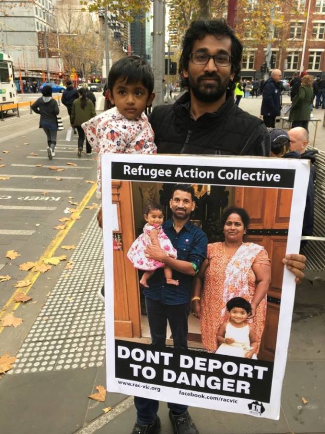 The rally was organised by the Refugee Action Collective, the Tamil Refugee Council and Home to Bilo, a group of Biloela residents and supporters campaigning for the family’s return.