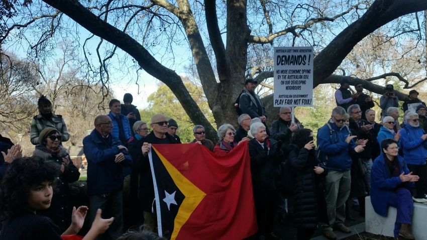 The rally was chaired by Jean Mclean, chair of the Australia East Timor Association and addressed by a number of activists from the East Timorese community and solidarity activists, including former Victorian Labor Premier Steve Bracks and his deputy John Thwaites.