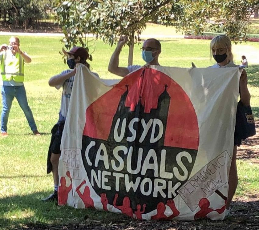 About 40 NTEU members and staff attended the rally in Victoria Park in Camperdown. A small group of supportive students cheered from a distance. The speakers were Unions NSW representative Mark Morey, University of Sydney NTEU branch president Kurt Iveson and Greens Senator Mehreen Faruqi.