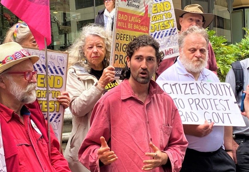 Supporters from BA, Extinction Rebellion and the Socialist Alliance gathered outside the court to show solidarity with the arrestees and to voice their opposition to the Liberal’s anti-protest laws, which only passed last year with Labor’s support.
