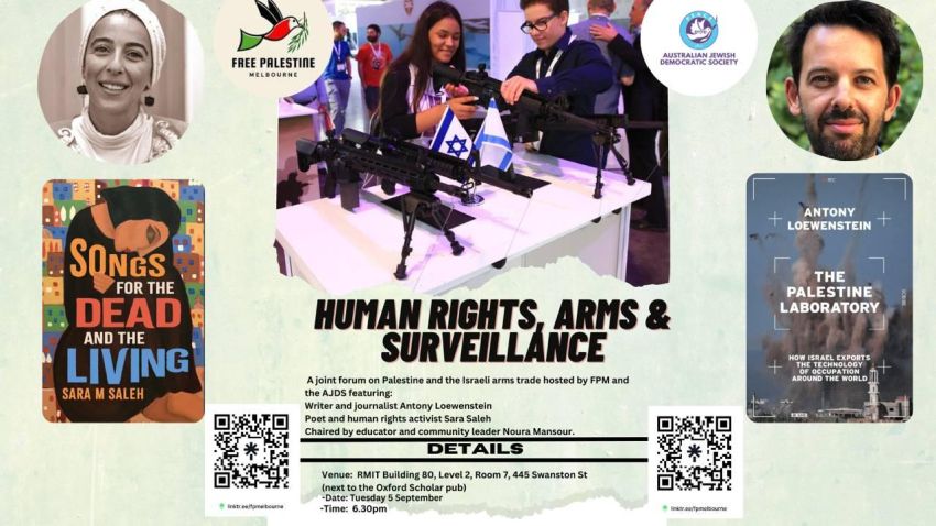 On Tuesday 5 September, Free Palestine Melbourne and the Australian Jewish Democratic Society will be hosting a joint forum at RMIT University in which journalist and writer Antony Loewenstein and poet and human rights activist Sara Saleh will discuss their work, writing and activism with APAN educator and community organiser Noura Mansour.
