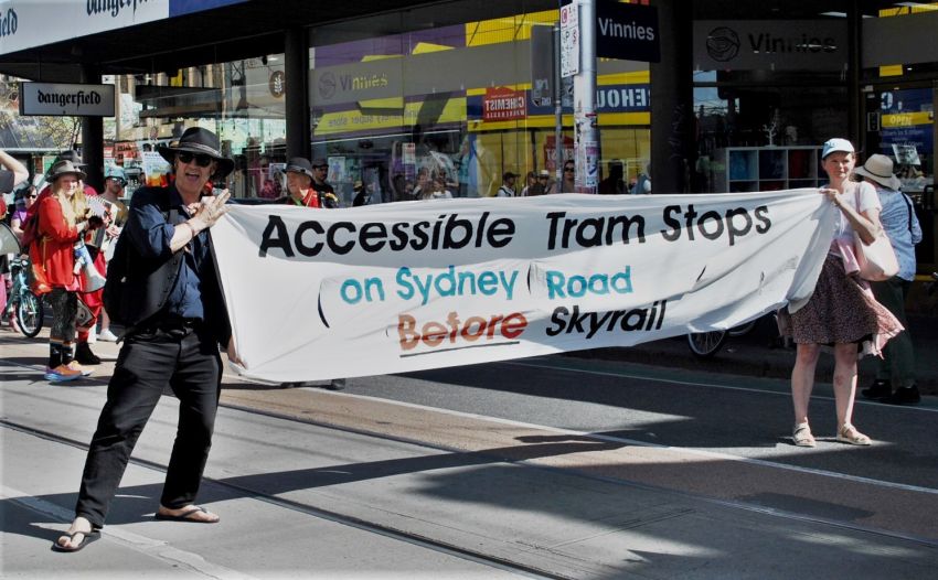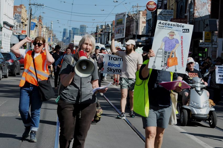 The protest was called by Sydney Road Accessible Tram Stops Campaign and took place during Transport Equity Week, September 17-23.