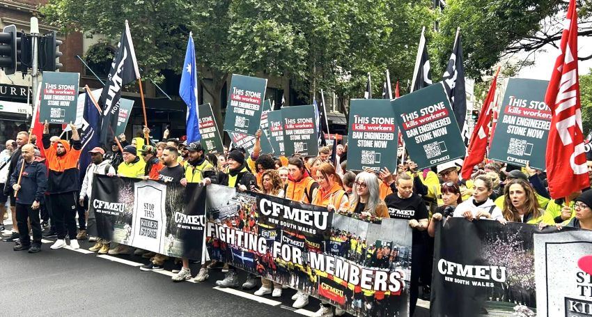 Thousands of Construction Forestry Mining and Energy (CFMEU) members and delegates, together with contingents from the Electrical Trades Union, NSW Plumbers Union and the Australian Manufacturing Workers Union to the streets on October 26 to again call on governments to immediately ban engineered and manufactured stone products.
