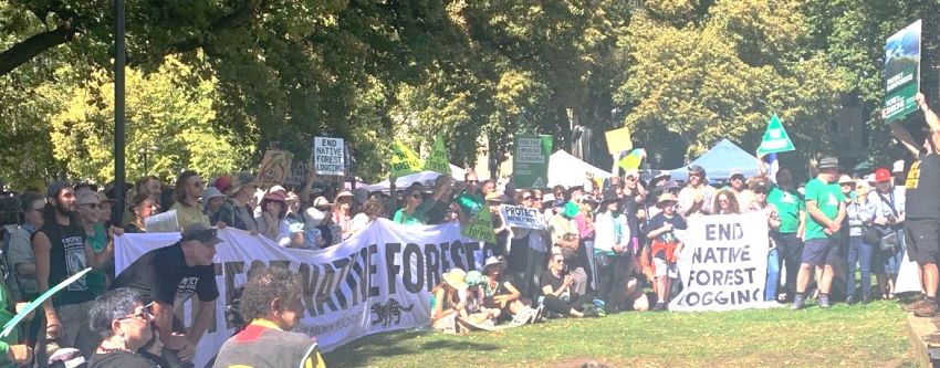 An estimated 3000 people called for native forest logging to end on March 17 as they marched through the CBD to parliament.