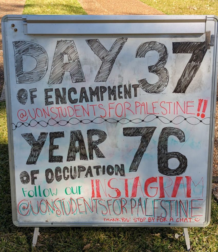 The University of Newcastle student encampment in solidarity with Gaza, now past its 37th day, stands strong.