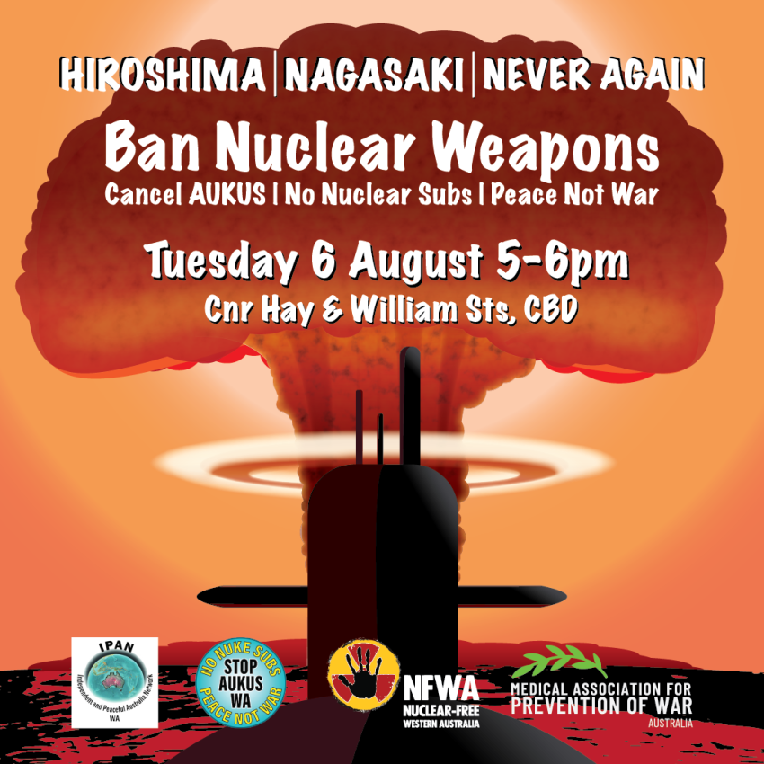 Join us for a vigil commemorating the devastating consequences of the nuclear weapons detonated by the US at Hiroshima and then Nagasaki. Be part of the important call for Australia to sign and ratify the UN Treaty on the Prohibition of Nuclear Weapons.
