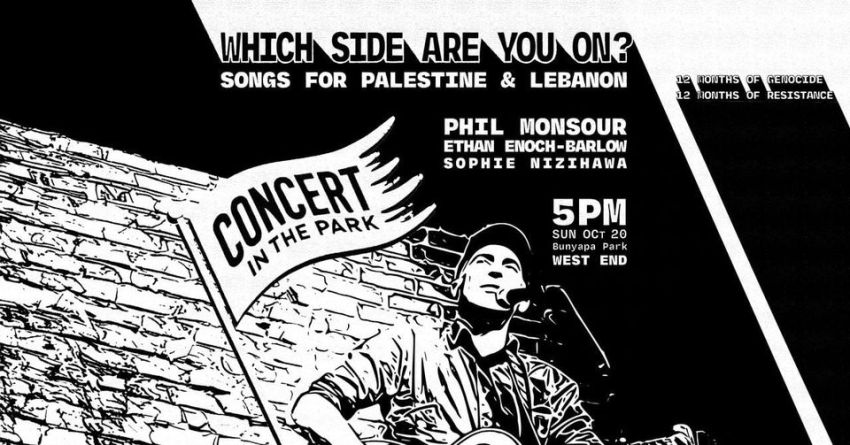 Musician and activist Phil Monsour will perform a special selection of songs for Palestine and Lebanon. With special guest Sophie Nishizawa and more to be announced soon. Please join us to mark12 months (and many years) of solidarity with Palestine and fighting to stop the genocide and war.