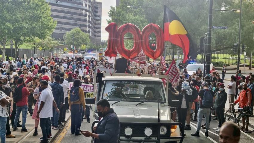 The action was organised on the 100th day of a 24/7 encampment that began on July 15 outside the office of then-Home Affairs minister Clare O’Neil in Oakleigh and later shifted to the Home Affairs department in Docklands.