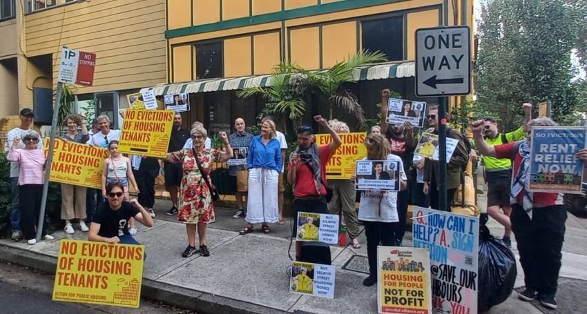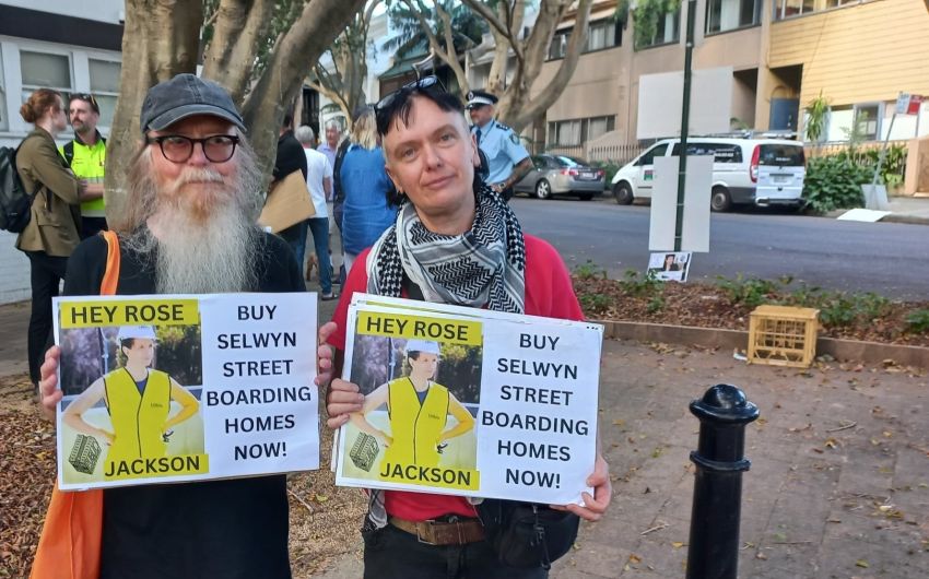 About 30 local residents and housing activists gathered outside boarding houses on Selwyn Street, Paddington, on January 31 to protest the eviction of 32 older men.