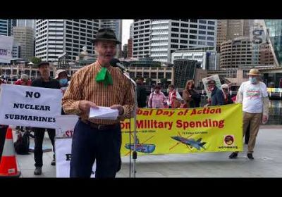 Peace groups organised a protest at Darling Harbour outside the 2022 Indo Pacific Expo naval arms bazaar. Video by Peter Boyle.