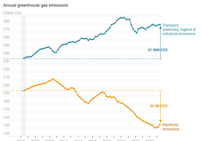 The latest statistics show that almost all the gains made from reaching an average of 40% renewable energy in electricity generation have been cancelled out by rising greenhouse gas emissions, mainly from transport. Peter Boyle reports.