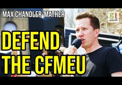 Greens MP for Griffith, Max Chandler-Mather, addressed the Construction Forestry, Mining Employees Union rally, telling them that the new law prevented them from due process. Video by Alex Bainbridge.