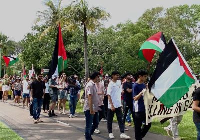 Nasser Mashni told the protest for Palestine it was wrong to see Israelis and Palestinians are equally responsible for the continuing bloodshed in Gaza. Stephen W Enciso reports.
