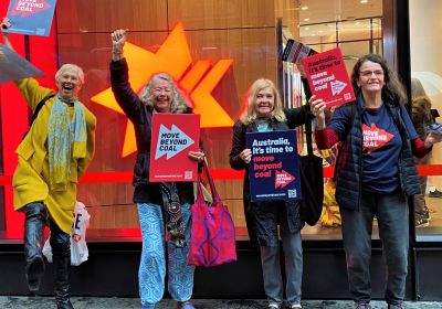 Move Beyond Coal activists asked National Australia Bank tellers on George Street, Sydney, to tell their colleagues that NAB should not fund Whitehaven Coal. Coral Wynter reports.