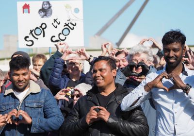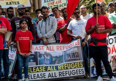 Tamil refugee activist Aran Mylvaganam was arrested, then released, during a protest at federal immigration, citizenship and multicultural affairs minister Andrew Giles’ office. Kerry Smith reports.