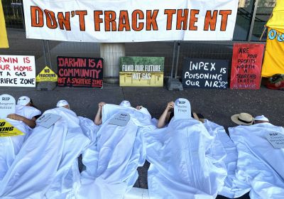 Climate protesters took their message not to frack the Beetaloo Basin to the NT Resources Week Conference at the Darwin Convention Centre. Stephen W Enciso reports.
