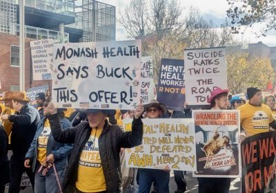 Hundreds of mental health workers took stop-work action to demand better wages and conditions. Jacob Andrewartha reports.