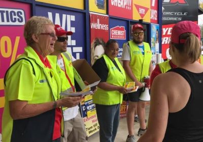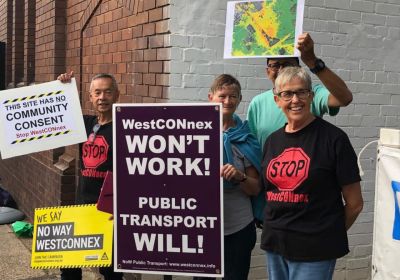 Newtown Residents Against WestConnex held a snap action outside a WestConnex information session in Newtown on March 27.