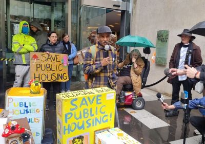 Housing activists protested outside a public housing complex that is being demolished. Isaac Nellist reports.