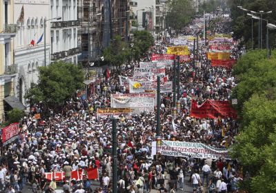 The proposed “bail-out” of the Greek economy by the International Monetary Fund (IMF) and European Union (EU) has set off a huge struggle with worldwide implications. On May 5, as Greek parliament debated the IMF-EU package, half a million people took over the streets of Athens as part of a nation-wide general strike. It was Greece’s largest demonstration in 30 years. -